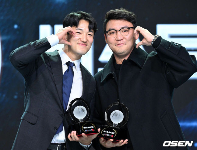 베스트 키스톤 콤비상은 올 시즌 LG에 29년 만에 우승을 안긴 듀오 오지환과 신민재에게 돌아갔다. 오지환은 "민재 덕분에 받은 상이다. 앞으로 열심히 해서 또 받도록 하겠다"고 했고 신민재는 "(오지환은) 내게 선생님 같은 존재다. 경기 중에도 많은 걸 알려주신다"고 고마움을 표했다.