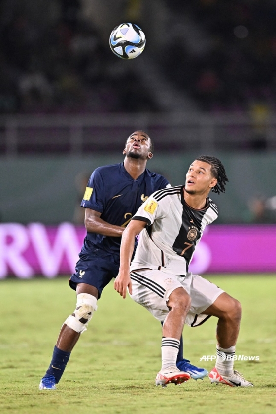 이어 독일이 후반 24분 미드필더 비너스 오시베가 경고 누적으로 퇴장당하며 수적 열세를 맞았다. 프랑스는 더욱 세차게 몰아붙였고 결실을 봤다. 후반 40분 마티스 아무구가 동료의 땅볼 크로스를 논스톱 슈팅으로 연결해 동점골을 터트렸다.