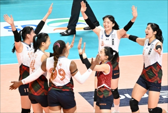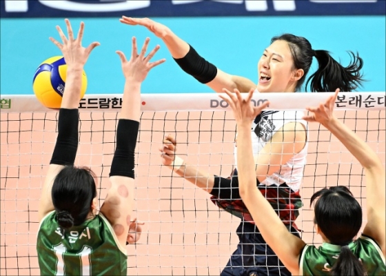 1세트 또 내준 GS칼텍스, 그대로 경기 내줬다... 현대건설 '파죽의 5연승' 선두 흥국생명과 승점 1점 차