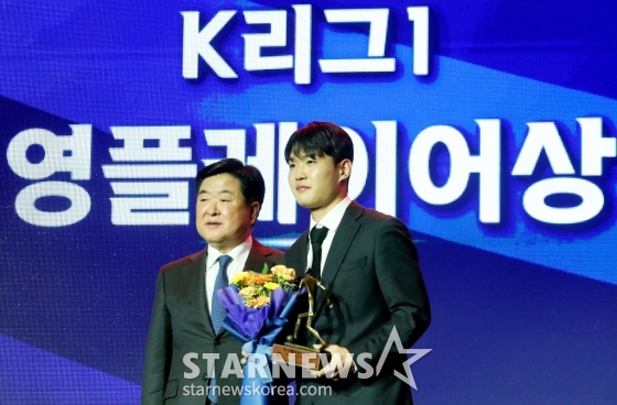 스포츠축구정호연 'K리그1 영플레이어' 수상[★포토]발행 : 2023.12.04 ・ 17:41김창현 기자광주FC 정호연이 4일 오후 서울 송파구 잠실 롯데호텔 월드에서 진행된 '2023 하나원큐 K리그 대상 시상식'에서 K리그1 영플레이어상을 수상하고 있다. 2023.12.04<저작권자 © 스타뉴스, 무단전재 및 재배포 금지>K리그K리그시상식KLEAGUE정호연리그플레이어추천 기사김창현 기자기자홈좋아요 스포츠-축구의 인기 급상승 뉴스스포츠-축구의 최신 뉴스