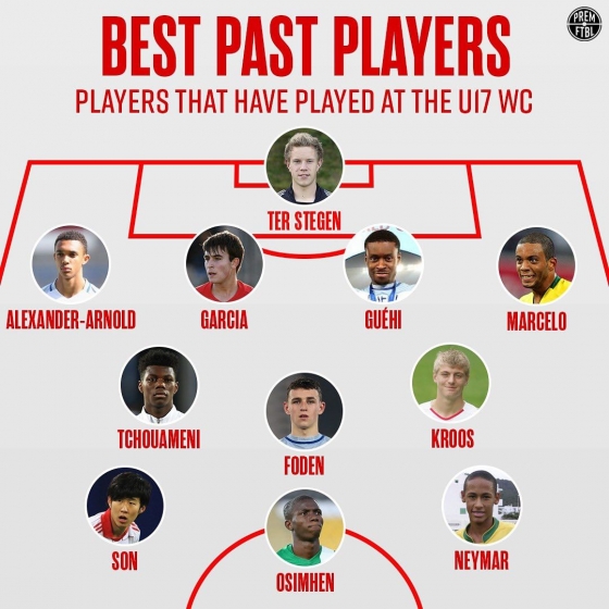U-17 월드컵 베스트 11은 월드 클래스 출신 삼바 군단 슈퍼스타 네이마르, 나폴리 폭격기 빅토르 오시멘, 축구 교수님 토니 크로스가 합류했다.