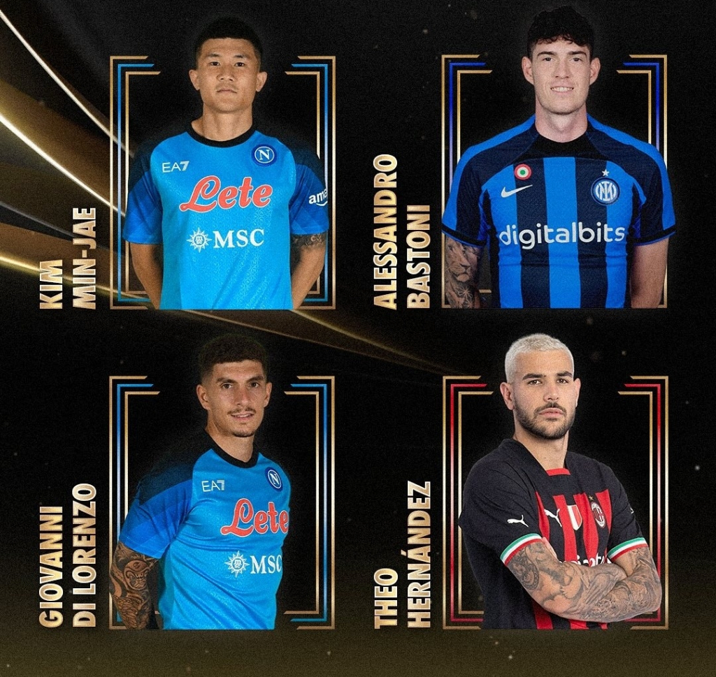 미드필더 부문은 니콜로 바렐라와 하칸 찰하노글루(인터밀란), 스타니슬라브 로보트카(나폴리)가 차지했다. 수비에는 김민재와 지오바니 디 로렌초(나폴리), 테오 에르난데스(AC밀란)와 알레한드로 바스토니(인터밀란)가 포진됐다. 마이크 메냥(AC)은 골키퍼로 선정되는 영광을 누렸다.