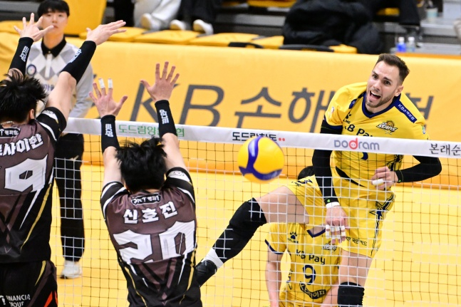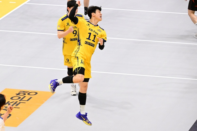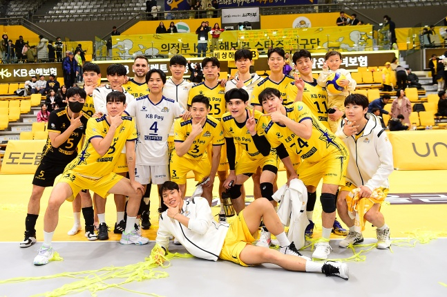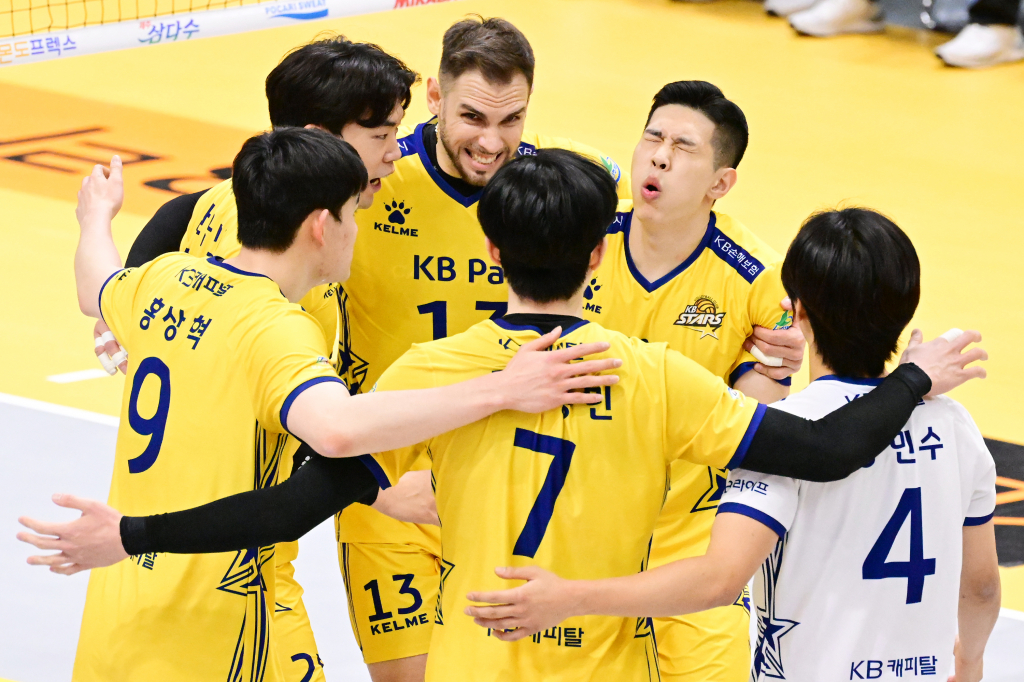 KB손해보험은 6일 경기도 의정부시 의정부실내체육관에서 열린 도드람 2023~2024 V리그 남자부 3라운드 홈 경기에서 OK금융그룹을 세트 스코어 3-0(25-20, 25-23, 25-17)으로 승리했다.