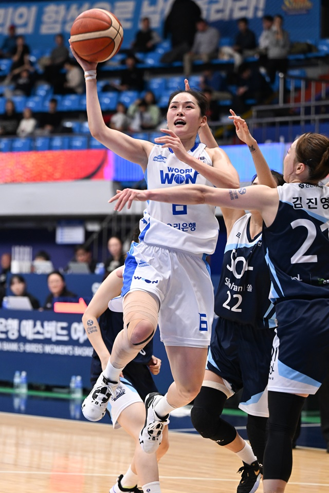 하지만 우리은행은 또 한 번 고비를 잘 넘겼다. 김단비, 고아라가 득점을 기록했다. 박지현은 버저비터 3점슛을 터뜨렸다.