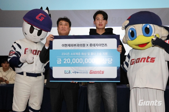 롯데는 "지난달 25일 진행했던 팬미팅 '사직오락관'에서 구단 공식 협력병원과 함께 2023시즌 사회공헌 기부금 전달식을 진행했다"고 14일 밝혔다.