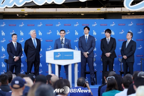 오타니 쇼헤이 공식 기자회견에 참석한 LA 다저스 관계자들. /AFPBBNews=뉴스1