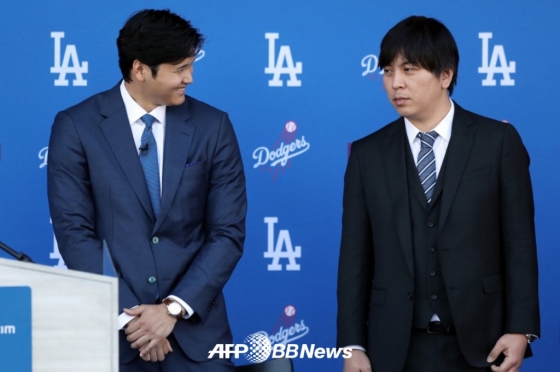 오타니 쇼헤이(왼쪽)와 그의 통역 미즈하라 잇페이. /AFPBBNews=뉴스1