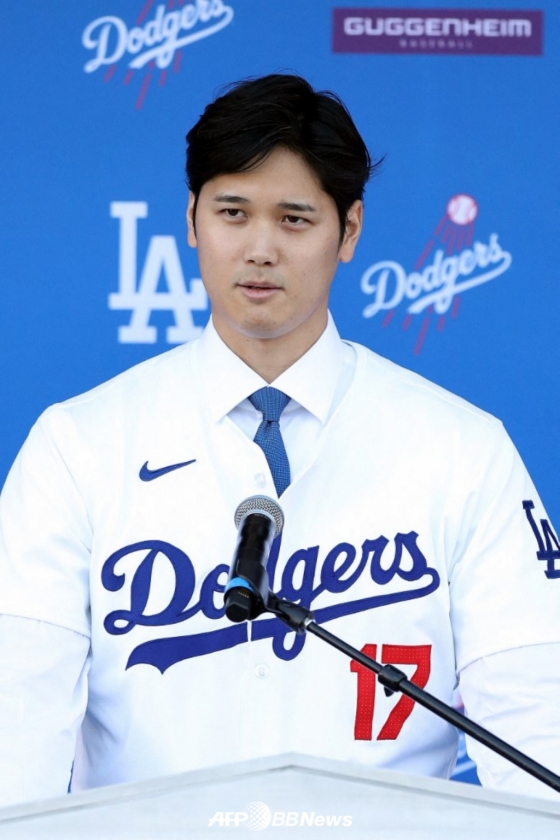 오타니는 15일(한국시간) 미국 캘리포니아주 로스앤젤레스 다저스타디움에서 열린 입단식 및 공식 기자회견에 참석해 각오와 포부를 밝혔다. 다저스 입단 발표 후 첫 공식 행보였다.