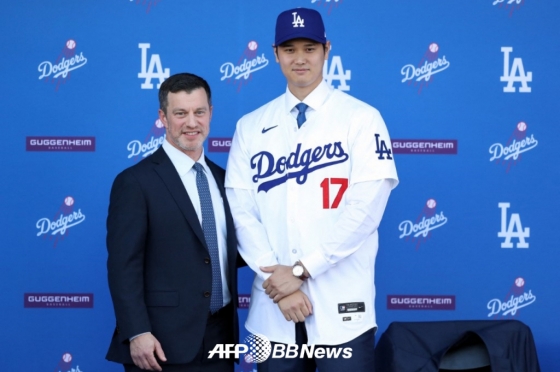 오타니 쇼헤이(오른쪽)와 앤드류 프리드먼 LA 다저스 사장. /AFPBBNews=뉴스1