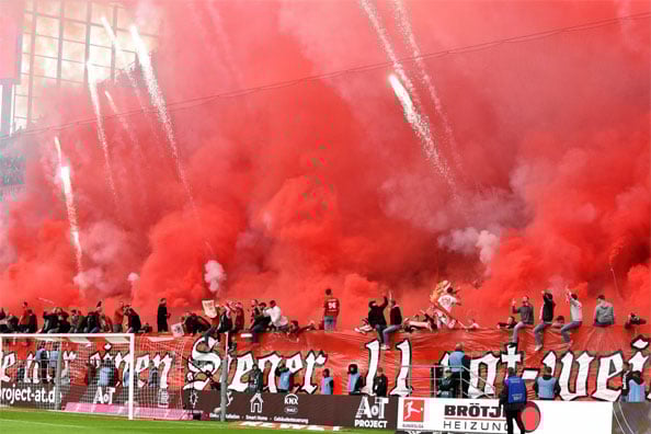 쾰른 팬들은 숙명의 라이벌과의 더비 경기 전후로 남쪽 스탠드 구역에서 수많은 불꽃을 터뜨렸다. 엄청난 연기가 발생하면서 킥오프가 6분 이상 지연되었다.