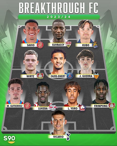 축구 콘텐츠 제작소 ‘score90’은 16일(한국시간) SNS를 통해 이번 시즌 큰 발전을 이룬 선수 11명을 공개했다.