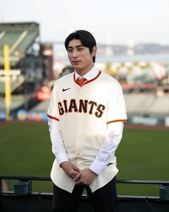 이후 자이디 사장으로부터 이정후를 상징하는 51번이 새겨진 샌프란시스코 유니폼을 건네 받고 착용한 그는 모자까지 써 모양을 갖춘 뒤 "취재진을 향해 "잘생겼냐(Handsome)?"이라고 말했다. 당당한 자세와 긴장하지 않는 여유를 확인할 수 있는 장면이었다. 현장에선 웃음이 터져나왔다.