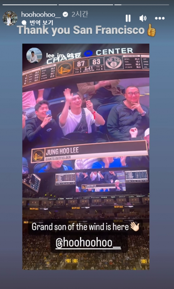 구단은 해당 영상과 함께 "새로운 샌프란시스코 외야수 이정후가 오늘밤 경기에서 따뜻한 환영을 받았다. 더 베이에 온 걸 환영해 정후(New @sfgiants(샌프란시스코 인스타 아이디) outfielder Jung Hoo Lee gets a warm welcome from Dub Nation at tonight's game)"라고 그를 반겼다.