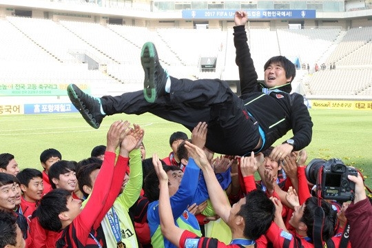 이창원 감독은 포항 유소년 팀을 떠난 뒤 대전하나시티즌, 중국 옌벤푸더 등에서 코치로 경험을 쌓았다. 2021년에는 대구예술대를 맡았다. 비포장도로였다. 그 누구도 주목하지 않은 축구 불모지였다. 그래서 더욱 이 악물고 준비했다. 기초부터 하나씩 다졌고, 원팀으로 뭉쳐 결실을 보았다. 지난해 8월 백두대간기 제58회 추계대학축구연맹전에서 정상에 올랐다. 창단 역사상 처음 트로피를 들어올렸다. 올해는 16강 진출에 머물렀으나 부임 후 단 2년 만에 무명 팀을 돌풍의 팀으로 만들었다.