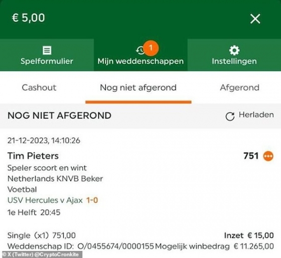 [스포탈코리아] 주대은 기자= 아약스를 무너뜨린 선수가 법대생인 것으로 밝혀졌다. 그의 친구들은 베팅으로 엄청난 돈을 벌었다.