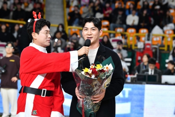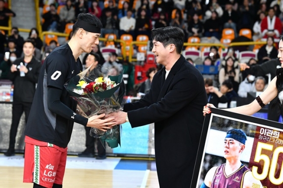 이어 오지환은 이관희의 기록 달성을 기념하는 퍼즐 액자를 전달하며 축하를 전했다. 창원 LG 선수단과 기념촬영을 이어간 오지환은 다시 한번 이관희와 악수를 나누면서 인사를 더했다.