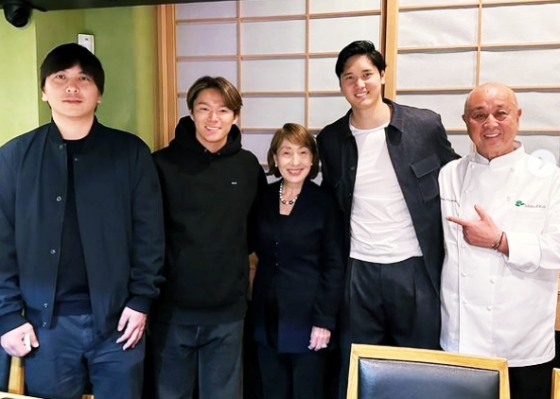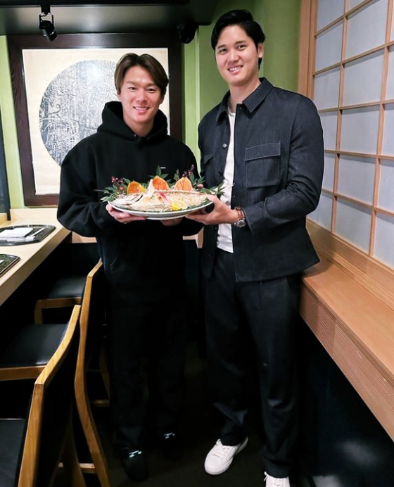 미국 메이저리그 공식 홈페이지 MLB.com 등 현지 매체들은 25일(한국시간) "오타니가 미국 캘리포니아주 로스앤젤레스 베벌리힐스의 노부 마츠히사의 식당에서 야마모토와 함께 저녁 식사를 했다(Ohtani, Yamamoto enjoy dinner in LA from celebrity chef Nobu Matsuhisa)"고 전했다.