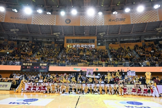 KB는 25일 청주 체육관에서 열린 우리은행 우리WON 2023~2024 여자프로농구 정규리그 아산 우리은행과 맞대결에서 73-61로 승리했다. 크리스마스에 열린 이 경기에 많은 관중이 찾아 엄청난 환호를 보냈다. 2800여석이 모두 매진됐다. WKBL은 이날 공식 SNS를 통해 "팬 여러분 감사하다"고 메시지를 전했다.