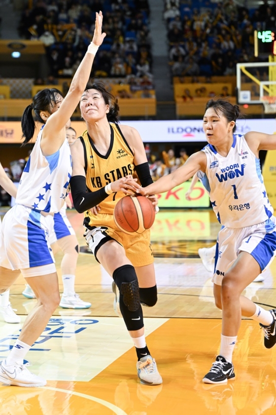 이날 우리은행은 박지현이 팀에서 가장 많은 22점을 올렸다. 최이샘은 16점, 이명관은 11점을 기록했다. 나윤정은 8점이었다. 에이스 김단비는 11리바운드 4어시스트로 활약했으나 상대의 거센 수비 속에 4점에 그쳤다. 결국 KB에 승리를 내줬다.