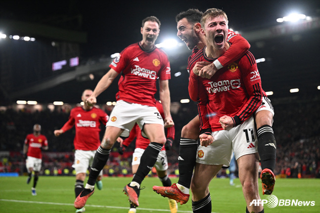 이날 맨유는 잉글랜드 프리미어리그(EPL) 19라운드 홈경기에서 아스톤빌라를 상대로 3-2로 이겼다. 0-2로 지고 있다가 이를 뒤집는 저력을 발휘했다. 후반 37분 코너킥 상황에서 맨유 공격수 라스무스 회일룬이 결승골을 뽑아냈다. 팀에 승리를 안기는 극장골이었다.
