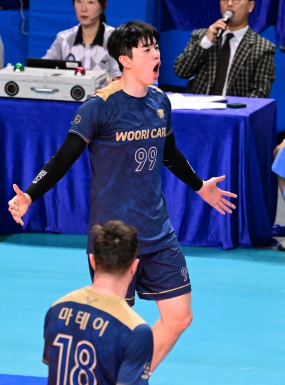 우리카드는 27일 오후 7시 서울 장충체육관에서 시작된 도드람 2023~2024 V리그 남자부 4라운드 홈경기에서 KB손해보험에 세트스코어 3-0(25-22, 25-18, 25-23)으로 승리했다. 이로써 파죽의 4연승을 달린 우리카드는 15승 4패(승점 42)로 선두 굳히기에 들어갔다.