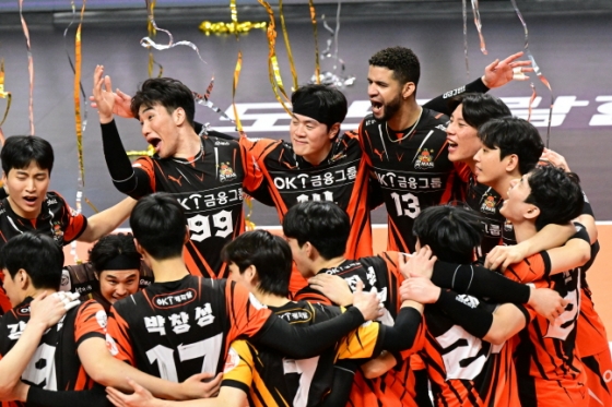 오기노 마사지 감독이 이끄는 OK금융그룹은 29일 경기도 안산 상록수체육관에서 열린 도드람 2023~2024 V리그 홈경기에서 대한항공을 세트 스코어 3-0(25-21, 26-24, 25-18)으로 제압했다.