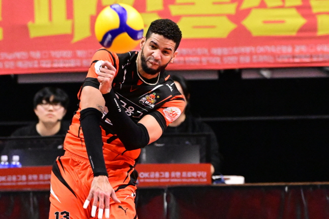 지난 경기 당했던 걸 그대로 갚아줬다. 강력한 서브를 앞세워 대한항공의 리시브 라인을 흔들었다. 1세트부터 레오나르도 레이바(등록명 레오)가 중심에 섰다. 서브 에이스 2개 포함 7점을 올렸다. 바야르사이한의 서브도 적중했다.