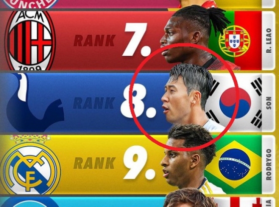6위는 르로이 사네(바이에른 뮌헨), 7위 하파엘 레앙(AC밀란), 8위 손흥민, 9위 호드리구(레알), 10위 흐비차 크바라츠헬리아(나폴리)가 차지했다.