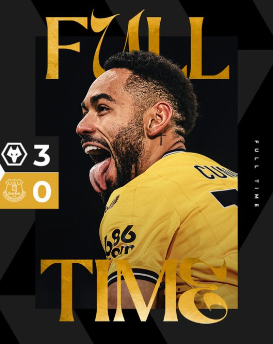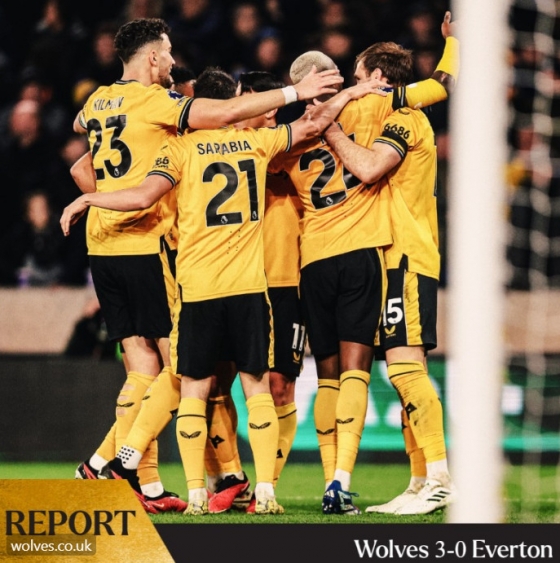 울버햄튼은 31일(한국시간) 영국 울버햄튼의 몰리뉴 스타디움에서 열린 에버턴과 '2023~2024시즌 잉글리시 프리미어리그(EPL)' 20라운드 홈 경기에서 3-0으로 완승했다. 시즌 첫 3연승을 질주한 울버햄튼은 승점 28(8승4무8패)로 정규리그 11위에 자리했다. 재정 규정 위반으로 승점 10이 삭감된 에버튼은 승점 16(8승2무10패)로 17위에 머물렀다.