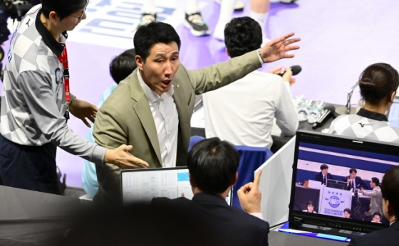 다만 어필 과정에서 권 감독이 책상을 내리친 게 화근이었다. 결국 최재효 주심은 권 감독을 향해 옐로카드와 레드카드를 동시에 꺼내들었다. 세트 퇴장.