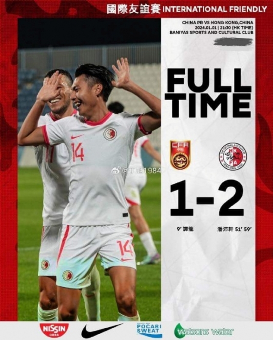 홍콩 매체 사우스차이나모닝포스트(SCMP)는 1일(한국시간) "홍콩 축구 국가대표팀(150위)이 아랍에미리트(UAE) 아부다비의 바니야스 스타디움에서 열린 비공개 친선전에서 푼푸이힌의 멀티 골을 앞세워 중국에 2-1로 역전승했다"고 전했다.