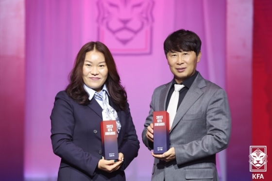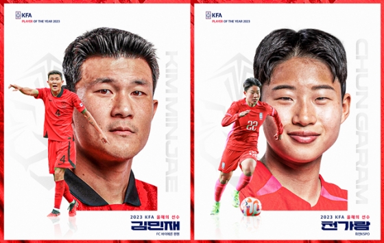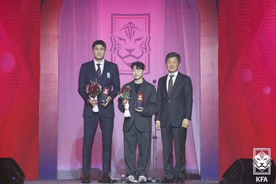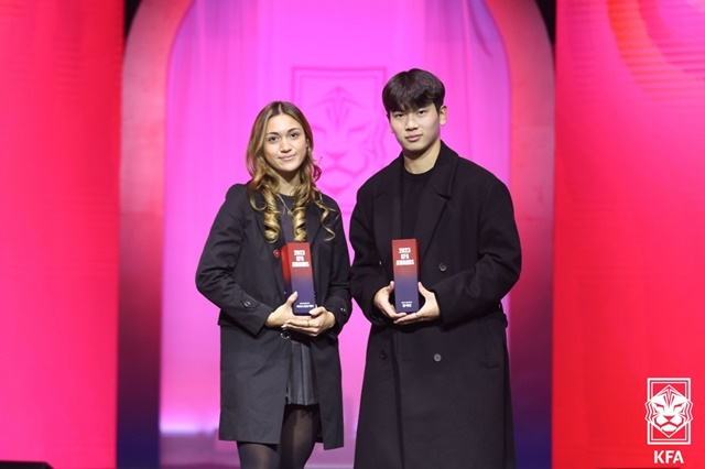 남녀 유망주에게 주어지는 2023년 영플레이어상은 항저우 아시안게임 금메달 주역 황재원(22·대구FC), 여자월드컵 역대 최연소 선수로 등극하며 국가대표팀의 미래로 자리 잡은 케이시 유진 페어(17·무소속)가 받았다.
