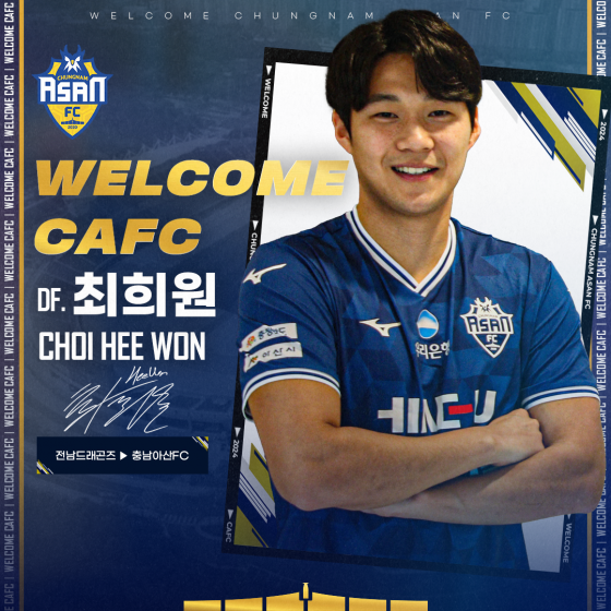 최희원은 “나를 믿고 불러준 충남아산에 감사하다. 올 시즌 팀이 목표하는 바를 이룰 수 있도록 최선을 다하겠다. 팬 여러분의 많은 관심과 응원 부탁드린다”라고 입단 소감을 전했다.
