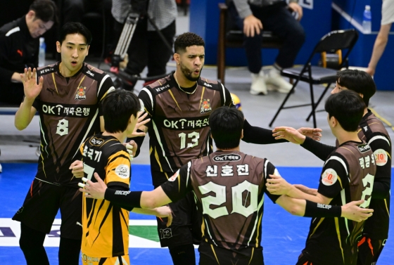 이날 결과로 OK금융그룹은 21경기 11승 10패 승점 30으로 4위를 탈환했다. 한국전력은 21경기 10승 11패 승점 29로 5위가 됐다.