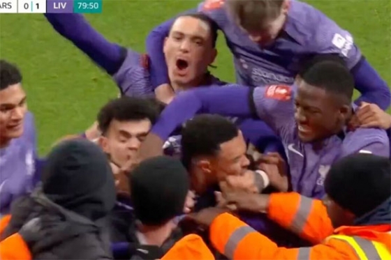 첫 골은 후반 막판에 나왔다. 후반 35분 알렉산더 아놀드가 왼쪽에서 코너킥을 올린 것이 아스널 수비수 키비오르의 머리에 맞고 자책골이 됐다. 잠시 후, 루이스 디아즈, 디오고 조타, 다윈 누녜즈가 세리머니를 하기 위해 다 같이 모였고 관중도 갑자기 골을 축하하기 위해 그라운드로 넘어왔다.
