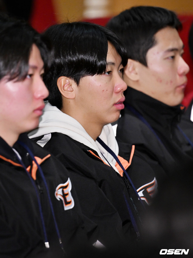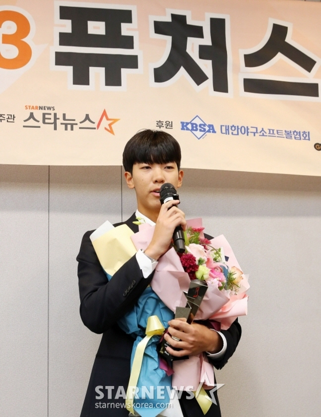 각 구단의 신인 선수이 총집결한 현장. 이 중 라이벌은 누구일까. "또 누가 나올지 모르기에 아직 잘 모르겠다. 만약 경쟁을 붙게 된다면 열심히 해서 내가 이길 것"이라며 마찬가지로 신인 자격이 유지됨는 1년 팀 선배 김서현에 대해서도 "같은 팀이지만 야구선수는 개인 사업자이기 때문에 야구장 안에서는 선의의 경쟁을 해야한다고 생각한다"고 당차게 말했다.