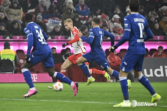 뮌헨은 13일 오전 4시30분(한국시간) 독일 뮌헨의 알리안츠 아레나에서 열린 '2023~2024시즌 분데스리가' 17라운드 홈 경기에서 호펜하임에 3-0으로 완승했다. 이로써 뮌헨은 승점 41(13승2무1패)로 리그 2위를 유지했다. 선두 레버쿠젠과 승점 1점 차다. 반면 호펜하임은 승점 24(7승3무7패)로 7위에 자리했다.