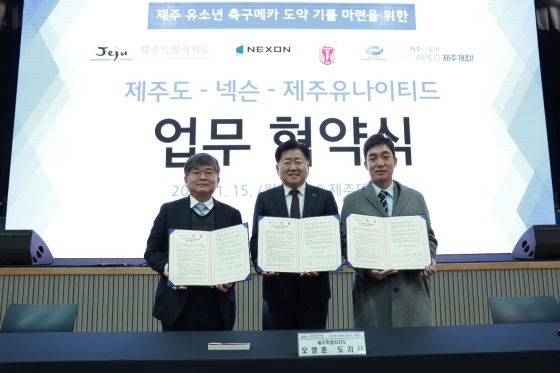 [스포탈코리아] 한재현 기자= 제주유나이티드가 제주특별자치도, 넥슨코리아(주)과 유소년 축구 메카 기틀 마련을 위한 업무협약식을 가졌다.