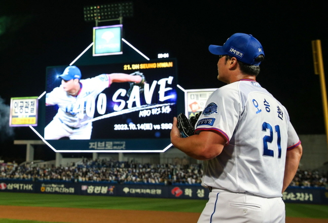 2005년 삼성에서 데뷔한 오승환은 5차례나 구원왕에 올랐다. 통산 성적은 668경기 739⅔이닝 41승 24패 400세이브 17홀드 평균자책점(ERA) 2.06. 올 시즌에도 4승 5패 30세이브 2홀드 ERA 3.45로 맹활약했다. 사상 최초 기록이자 현역 2위인 정우람(197개)과 차이가 커 사실상 한동안 깨지기 힘들 기록으로 평가받는다.