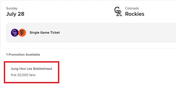 이정후의 버블헤드 데이는 일찌감치 결정됐다. 오는 7월 29일 미국 캘리포니아주 샌프란시스코의 오라클 파크에서 열리는 콜로라도 로키스와 홈 경기다. 이날 구장을 찾는 선착순 2만 명의 관중에게 이정후를 본따 만든 인형이 증정된다.
