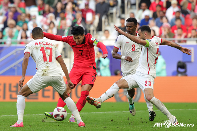 위르겐 클린스만 감독이 이끄는 한국 축구대표팀은 20일(한국시간) 카타르 도하의 알투마마 스타디움에서 열린 요르단과 아시안컵 조별리그 E조 2차전에서 2-2 무승부를 기록했다. 전반 9분 '캡틴' 손흥민(토트넘)의 페널티킥 골로 앞서 나갔다. 하지만 전반에만 2골을 얻어맞았다. 다행히 후반 추가시간 황인범(즈베즈다)의 슈팅이 상대로 자책골로 이어지면서 어렵게 승점 1을 챙겼다.