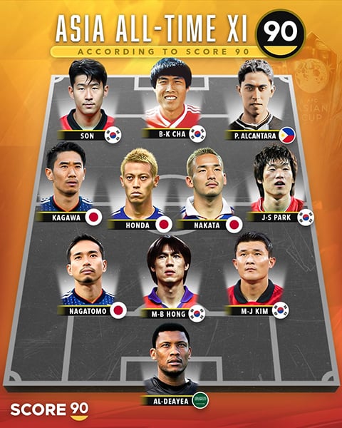 축구 콘텐츠 제작소 ‘score90’은 21일(한국시간) 자체적으로 아시아 선수 올타임 베스트 11을 선정해 발표했다.