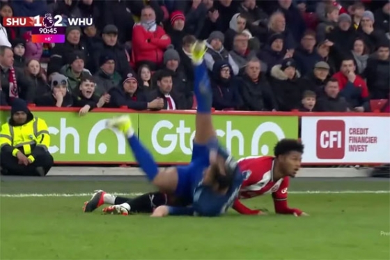 영국 매체 ‘스포츠 바이블’은 22일(한국 시간) “리안 브루스터는 셰필드 유나이티드와 웨스트햄의 2-2 무승부에서 후반 막판 충격적인 반칙으로 퇴장당했다”라고 보도했다.