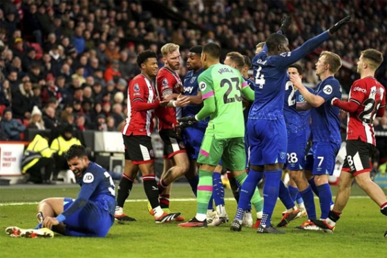 셰필드 유나이티드는 21일(한국 시간) 영국 셰필드의 브라몰 레인에서 열린 2023/24 시즌 잉글리시 프리미어리그(EPL) 21라운드 웨스트햄 유나이티드와의 경기에서 2-2로 무승부를 거뒀다. 이 경기 막판에 다툼이 벌여졌다.