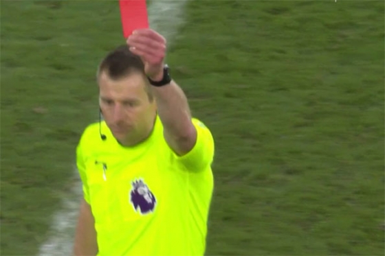 후반 35분 벤치에서 투입된 브루스터는 처음에 주심으로부터 옐로카드를 받았지만, 곧이어 VAR이 주심에게 경기장 측 모니터를 확인하라고 조언했다. 매들리 주심은 재빨리 옐로카드를 레드카드로 번복했고 브루스터는 터널 아래로 퇴장당했다.