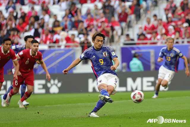 이른 시간 일본이 선제골을 뽑아냈다. 전반 4분부터 인도네시아 수비진이 일본 공격수 우에다를 잡아끌었다. 주심은 비디오판독(VAR) 끝에 페널티킥을 선언했다. 우에다가 직접 키커로 나서 마무리 지었다.