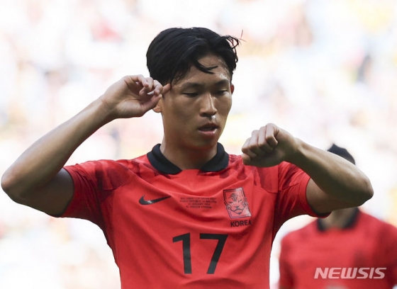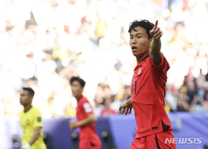 한국이 서서히 공격 빈도를 높였다. 전반 10분 이강인이 오른쪽 측면에서 수비를 흔든 뒤 올린 볼이 조규성 머리 위로 넘어갔다.