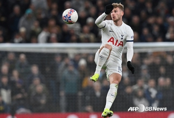 토트넘은 27일(한국시간) 영국 런던의 토트넘 핫스퍼 스타디움에서 열린 '2023~2024 잉글랜드축구협회(FA컵)' 4라운드(32강) 홈 경기에서 맨시티에 0-1로 패했다. 토트넘이 맨시티에 패한 것은 2018년 10월 이후 6년 만이다. 사진은 티모 베르너. /AFPBBNews=뉴스1