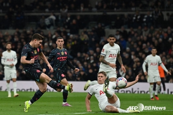 맨시티가 전반 막판까지 쉴새 없이 몰아붙였다. 전반 41분 로드리와 코바치치, 밥이 연달아 때린 슛을 토트넘 수비수가 계속 육탄방어로 막아냈다.