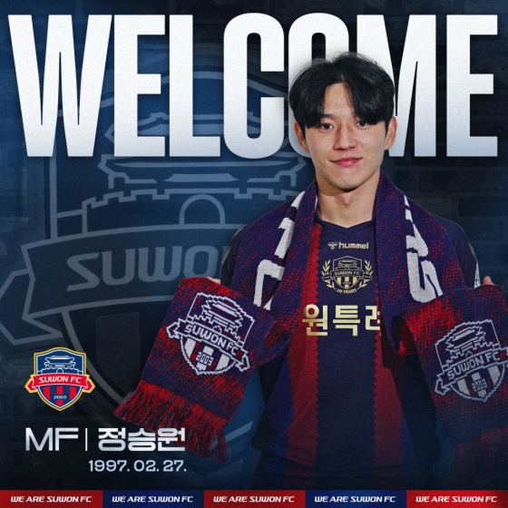 수원FC는 27일 보도자료를 통해 "수원FC가 정승원(27)을 영입했다. 2017시즌 대구FC에서 프로에 데뷔해 2022년부터 수원 삼성에서 활약한 정승원은 어느덧 K리그 통산 167경기(8골) 출장을 기록하고 있는 리그 수준급 선수다"라고 밝혔다.